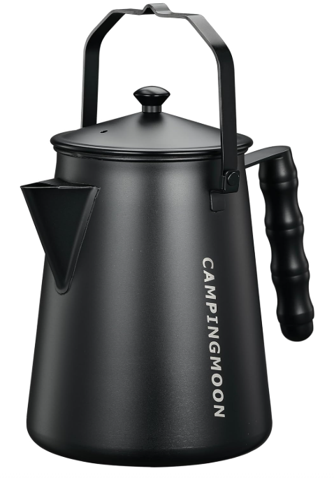 キャンピングムーン ファイヤープレイスケトルは、焚き火とともに使い込むほど味が出るアウトドアケトルです。