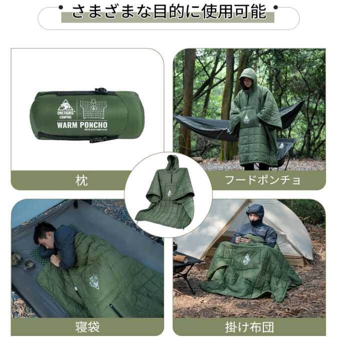 OneTigrisのキャンプ用ブランケットは、防寒ブランケットとしてだけでなく、アウトドア用マントやキルトとしても使える多用途モデルです。