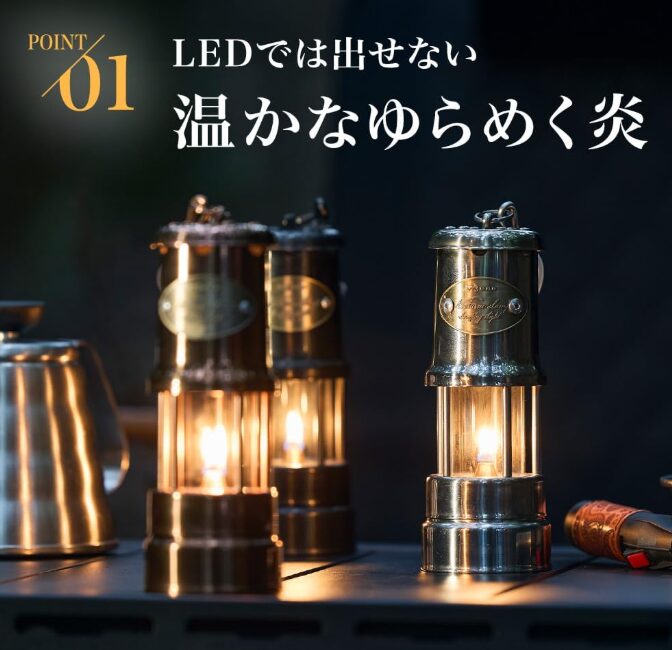 一方オイルランタンは炎がゆらゆら揺れるため、キャンプサイトを落ち着いた雰囲気にしてくれます。